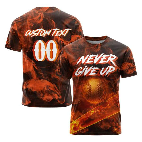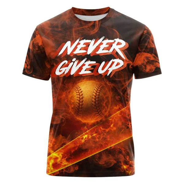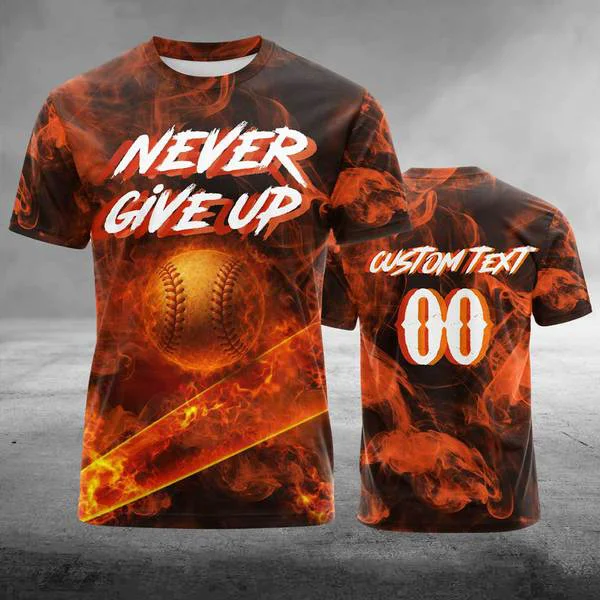 Never Give Up Baseball Shirt For Baseball Lover – Custom Text & Custom Number – All Over Print
